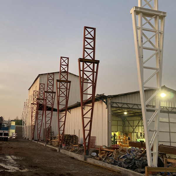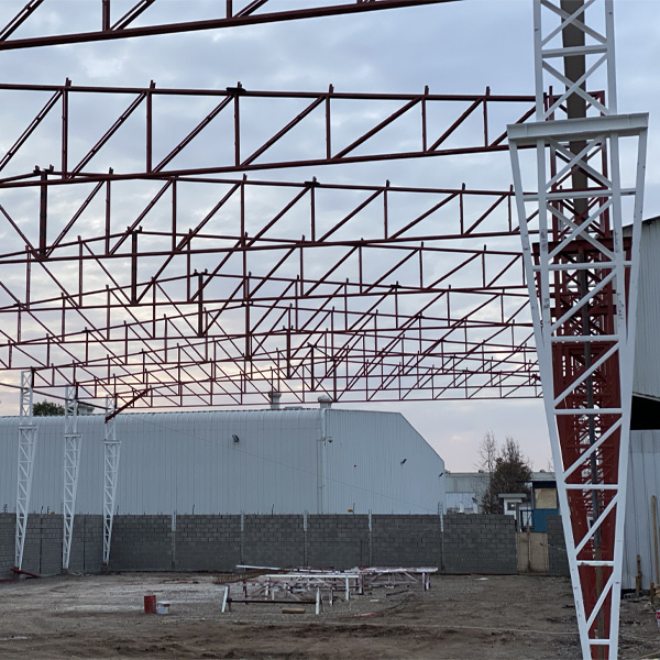 Fabricación y montaje de estructura reticulada para 52.000 m² de naves industriales. Cerchas de 20 m de largo y modulación de marcos cada 6 m. Estructura se entregó con aplicación de pintura intumescente.